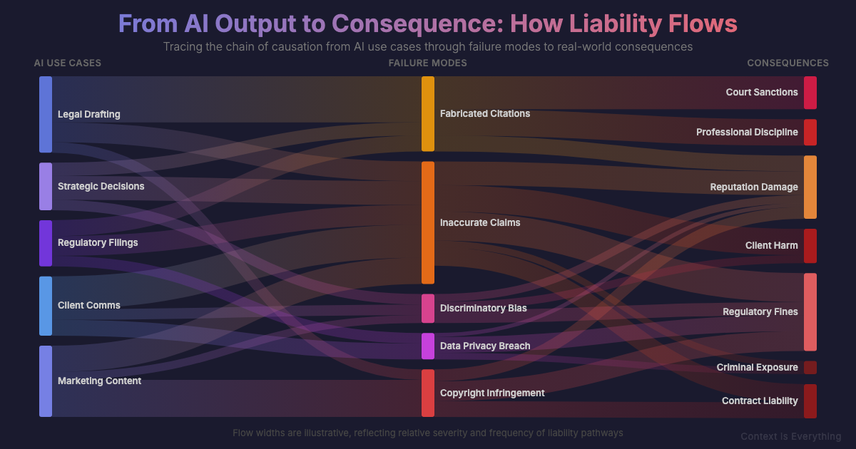 In the UK, barristers have been rebuked for submitting AI-generated legal arguments built on fabricated precedents. The High Court has issued formal warnings to the entire profession. The message is consistent: "The AI told me" is not a defence.